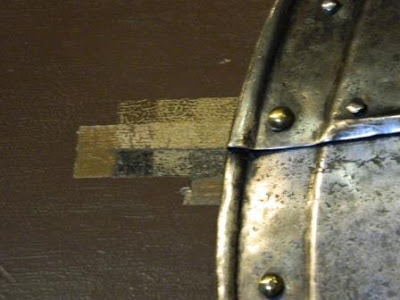 Detail showing the different paint finishes on the wooden horses(Wooden horse to the left of the photo, armour to the right) Endoscopy has given a fascinating insight into how these models were crafted. Each horse was made from wooden planking (they are hollow) and assembled with traditional carpentry techniques. If you look hard you can see the joins and wooden pins.