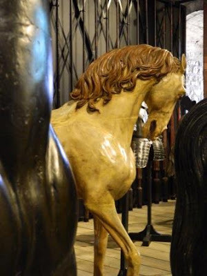 In this exhibition you will see suits of armour, including two worn by King Henry VIII, as well as life-sized horses, carved in the 1690's to display equine armour. For me it is these figures that steal the show. Because of their great age, over 300 years old, these horses are now too fragile to support the weight of armour they were originally intended to carry, but in their own right they are beautiful sculptures.