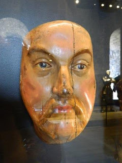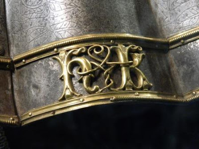 Detail from Henry VIII's armourAs well as those fabulous horses there is an eerie cabinet displaying the carved likenesses of kings’ heads and hands. To whet your appetite further, below is a photo of the wooden horse made to display King Henry VIII’s armour in a late 17th century display.