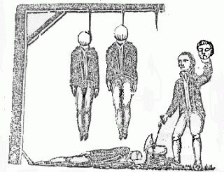 A gruesome depiction of the execution of the ringleaders.Notwithstanding the circumstances of the uprising and the involvement of the English government, the powers in London decided to make an example of the rebels. Forty-five men were tried for high treason. Three were hanged, including Jeremiah Brandreth, Isaac Ludlam and William Turner, the “ringleaders”—all characters in my novel. Fourteen were sentenced to transportation to Australia, including one young man of whom my heroine was quite fond. Years after the events, in a letter written in 1831, Lord Melbourne, a former Home Secretary, recalled that there was "much reason to suspect that the rising in Derbyshire...was stimulated, if not produced, by the artifices of Oliver, a spy employed by the Government of that day.”