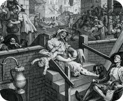 Gin Lane by the 18th century artist, William Hogarth - a perilous time to be a child. The babies were breast fed and their first two to four years of life were likely spent in the countryside, farmed out to a wet nurse. At around about three years, they returned to London where they were inoculated against smallpox - a major innovation of the day. It seems an emphasis was placed on healthy living because they were encouraged to play outside.