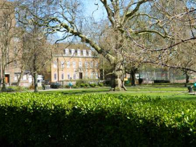 The west side of Brunswick Square.So what about to the rear of the Foundling Museum? I found a delightful patch of green that was once a cemetary, St George's Gardens.