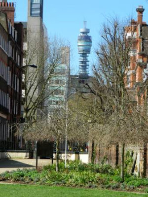 However, this once peaceful space is even now being hemmed inby redevelopement. And as I turned to leave St George's Garden, what did I see but the Post Office Tower (or whatever they call it these days!) A reminder how small London is and how close everything is together.