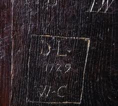 One example of the initials carved intoThe Great BedDespite its huge size, the bed travelled about quite a lot. In the 19th century it was situated at the Saracen’s Head, another inn at Ware, but it also had brief stays at The George, The Crown or the Bull. In 1870, William Henry Teale, the owner of the Rye House, acquired the bed and used it in his pleasure garden as a visitor attraction. In 1931, it was acquired by the Victoria and Albert Museum, in London, where it is now one of their most prized exhibits. The most famous mention of it during the Elizabethan period is in Shakespeare's Twelfth Night of 1601 : Toby Belch ...and as many lies as will lie in thy sheet of paper, although the sheet were big enough for the bed of Ware in England...'.