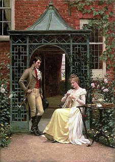 Shaking hands with a person of the opposite sex was less frequent and less proper. A touch, a pressure of the hands, was the only external signs a woman could give of harboring a particular regard for certain gentleman and was not to be thrown away lightly.Between sisters or ladies of equal age or rank a kiss on the cheek was acceptable. A gentleman might kiss a lady's hand, but kissing it 'passionately' was a gesture of excessive intimacy.
