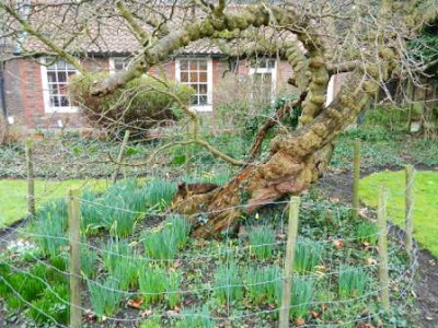 This plot of land was enclosed in 1670 to form a walled garden and it was planted with a variety of fruit trees. It seems likely that the Downes family planted the mulberry tree (above) in the late 17th century - and it is still thriving to this day. The photo below shows Mr Allgrove and his wife Elizabeth, in the 1890's, standing beside the mulberry tree in front of the house.