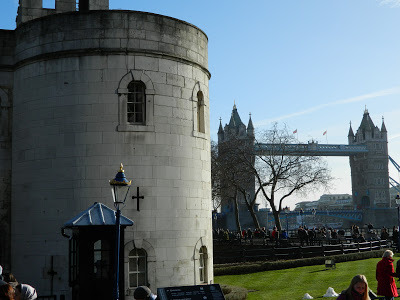 The Tower of London with Tower Bridge (over the Thames) in the background.King Edward I (Henry III's son) took an interest in his father's menagerie. He employed 4 keepers, each paid 3d each a day, plus a 10d allowance towards animal food. Some thirty years after the original bear, records exist of payment for a white bear called Lynn (she originated from a place of the same name) being transported by boat (presumably up the Thames) to the Tower.