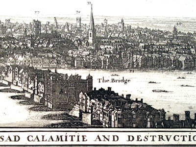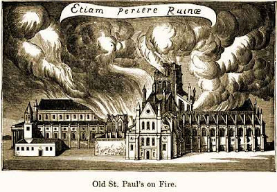 He was wrong. By dawn part of London Bridge was burning and by the time it was exstinguished on Wednesday 5th September, an estimated 13,000 houses and 89 churches, including the Old St Pauls, had been destroyed.