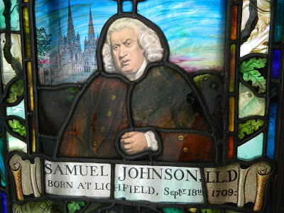 A stained glass window at 17 Gough Street, showing the great man.So did Johnson's partiality for felines colour his dictionary definitions?