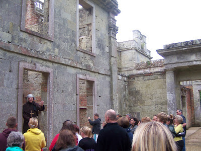 The main entrance - Appuldurcombe House - sadly behind the facade is a ruin,the building destroyed by a World War II bomb. Q. What do a priest, John Smith and an heir to Appuldurcombe House have in common?