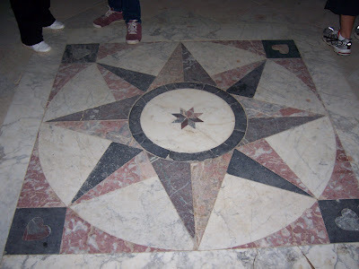 A marble floor under which 4 Worsley children are buried. Not the love hearts at the corner of the design : 2 blue and 2 pink, denoting 2 boys and 2 girls.But what of unnatural deaths?