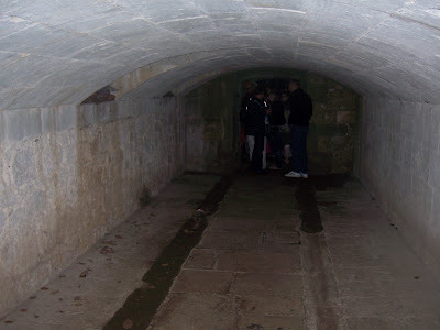 Part of the cellar network beneath Appuldurcombe House. Moving forward in time to the mid 1600's, we find the Worsley's were secret catholics at a time of persecution. The punishment for harbouring catholic priests was severe - a red hot poker up the derriere and so people went to great lengths to hide visiting cleris and those wishing to conduct mass had a number of secret hiding places or 'priest holes.' Appuldurcombe was no different and had a tunnel leading from the cellar to woodland 500 feet away. Unfortunately, the excavation of the tunnel followed a natural geological fault that dipped at one point and was prone to collecting water. This meant the escapee had to hold his breath, crawl underwater a few seconds before emerging on the other side.