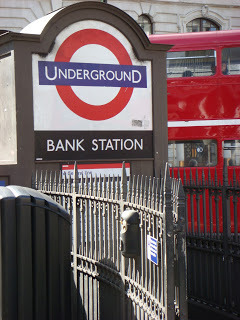 Mind the Gap. My day out in London started at Bank tube station. What surprised me as I emerged up onto street level was the amazing historic buildings within sight of the station: The Bank of England, The Royal Exchange and the Mansion House. Apparently the Victorian engineers were also overawed, and afraid of being sued by wealthy property owners if their tunnels caused subsidence.