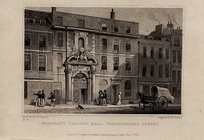 Merchant Taylors hall, Threadneedle Street.(*1) My colleague mentioned he went to Merchant Taylors school, Northwood. He recounted the dispute between the Taylors and Skinners, and how lives were lost on the Thames- and this whetted my appetite to find out more! (*2) Most companies originally admitted women to their ranks, but this was stopped around 1800.