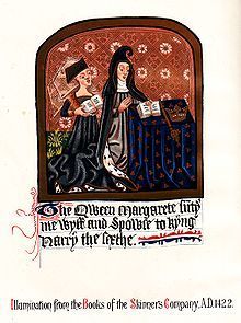 Queen Margarete of Anjou, wife of King Henry VI, is entered in the roll of the fraternity of Our Lady under date XV year of King Edward IV (A.D. 1475)