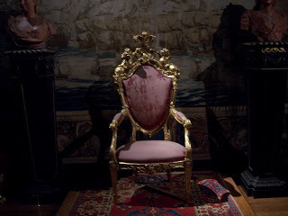 The gilded chair on which the King sat to recieve courtiers.This one belonged to George II's son, Frederick. But then the palace plays a trick - the deeper in you go the larger and grander the rooms become. In the Georgian court you either had to be a person of great importance, or else afford ever increasing bribes, to progress further.