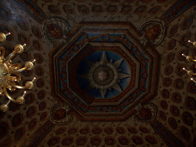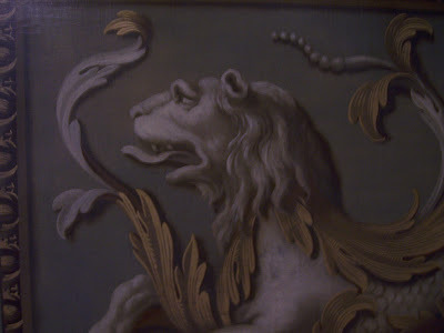 The ceiling in the Cupola Room (Thank you KP for allowing photos, but alas not flash photography.)Kent was a controversial choice because his art was different - and in time came to set the tone for the Georgian era. His greatest rival, Sir James Thornhill was most put out that Kentwon the job and his friends tried to undermine the young artist by casting aspersions on the quality of his work. They accused Kent of cutting costs by using inferior quality paint, especially when it came to the gilding - modern tests proved their claims to be false.