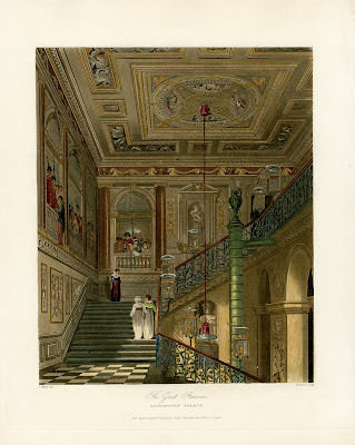 Lucy Worsley's captivating bookabout the intrigue in the Georgian Court.The sweeping mural that lines the staircase shows a snapshot of the royal household from Peter the Wild-Boy to the King's mistress, from Mohammed (the King's advisor) to the artist William Kent who painted the scene. To enter the hall and walk up the staircase, is spell-binding and I couldn't help but stop and stare in wonder. A vibrancy and sense of life oozes from the walls such that you can hear the scuttle of silk slippers and gossip whispered behind hands.