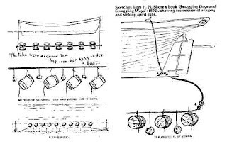 Many of these horses could also find their own way home. This came in handy with the nag loaded with contraband, leaving the smuggler free to create a diversion for any prying eyes. The horse, carrying illicit barrels, found his way back to the stable where a conspirator waited to unload. A variation on this story was one horse who became disoriented by the alcoholic vapours eminating from the tubs strapped to his back, and wandered to his neighbour's house - who happened to be a customs officer. The officer, alerted by the sound of hooves, impounded the contraband and then followed the now unladen horse as he found his way back to the correct house.