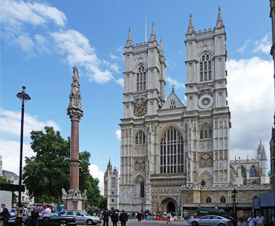 Westminster Abbey - built of the site of Edward's church. Photo Karen Matthews.And finally, I mentioned medieval Charing Cross, near Trafalgar Square, a short distance from the modern Charing Cross. The original spot was marked by the memorial cross erected by King Edward in 1290, to mark the route of his beloved wife's, Queen Eleanor, funeral procession. The giant cross became such landmark that when the new Charing Cross railway station was opened in 1865, to drum up publicity the original monument was removed and a new and grander memorial erected beside the station to establish a landmark.
