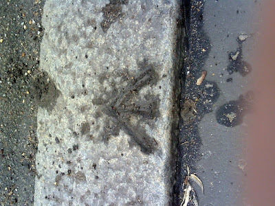 Kerbstone marked with an arrow - courtesy of Roger Templeman.
