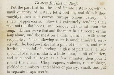 Her final chapter contains dinner plans for family dinners. For us, dinner consists of three or four dishes, she starts at five and works her way up very quickly, all the way up to two courses of eleven dishes plus removes. (Removes were dishes that were replaced with something else part way through the course). I have to admit, the thought makes my head swim. For a big holiday dinner with all the relatives coming, I might make eight dishes, not including dessert, which I try to have someone else bring. Twenty two to twenty four dishes and you might just need to lock me up in a room with very soft walls!The contents of Mrs. Rundel’s menus were also very heavy on the meat dishes. For example, a five course meal might include: Half Calf's Head, grilled, (Remove and replace with Pie or Pudding.)Tongue and Brains, Carrot Soup, Greens round bacon, Saddle of Mutton, and Potatoes and Salad, at side table. That’s three mean dishes out of the five. Atkins friendly I suppose.
