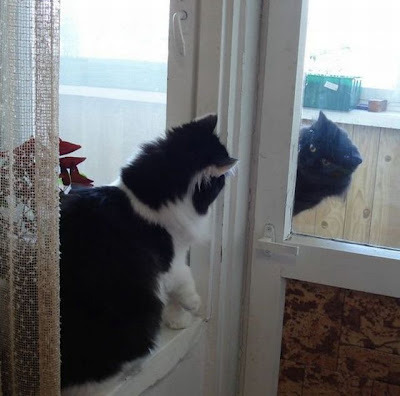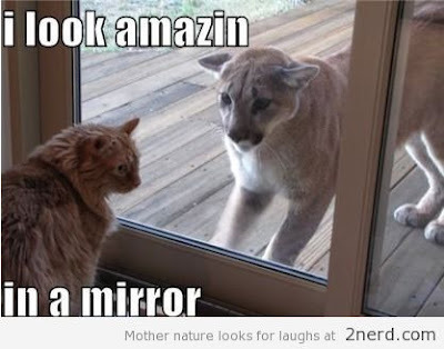 Cat-Mirror prank photo courtesy of ROFLzoo.com The author, Geoffrey De La Tour Landry, goes on to write how when a lady 'plucked from her brows and forehead to have away the hair' in order to make herself 'the fairer and pleasing to the world' her vanity gave the devil a chance to enter her soul."In every hole that her hair hath been plucked out…the devil [enters] a burning needle into the brain."