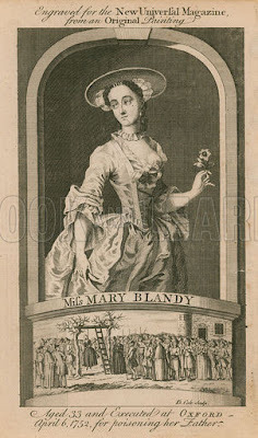 The root of the Victorian horror of poisoning can be found a hundred years earlier, in the case of Mary Blandy. In childhood Mary was disfigured by smallpox, but with a dowry of 10,000 pounds she had hopes of marriage. However, none of her suitors met the stringent standards set by her father, Francis Blandy. Then along came Captain William Cranstoun, who although a short, pock-marked, clumsy man, had the advantage of being a scion of Scottish aristocracy and his suit was welcomed by Mr Blandy. Mary and William became engaged, but then disaster! Francis Blandy found out his prospective son-in-law was already married. Captain Cranstoun left in disgrace, but unknown to Mr Blandy, kept up a correspondence with the infatuated Mary.