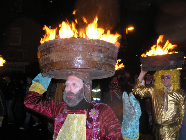 The barrels are cut down to a depth of 12 inches and filled with rags and shavings soaked in paraffin, although originally tar would have been used, and set alight. The more romantic traditionalists say this custom has its roots in ancient fire worship carried out by the Vikings, Celts and Druids - whereas the truth is slightly less exciting!