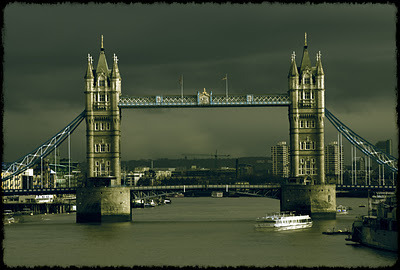 Tower Bridge (often mistakenly called, London Bridge.)The pedlar thanked him and left. He proceeded home to dig under the oak tree, only to unearth a pot of gold! Some versions add that a visitor to the now wealthy man read a Latin inscription on the pot that translates as:"Under me doth lie, Another much richer than I."