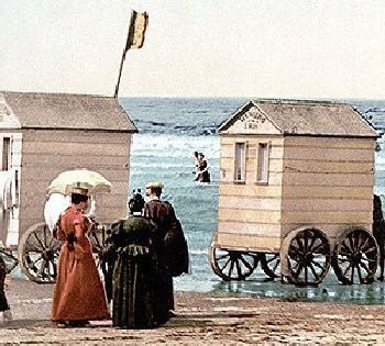 With this in mind it came as a quite shock to also read that some early Victorians thought nothing of bathing nude in the sea! The invention of swimming costumes came as late as 1870 and before this the options were a bathing hut wheeled into the sea or to cavort naked in the waves. It seems the later was not as exceptional as you might suspect, andmany preferred nude bathing! In the summer months the correspondance columnos of local newspapers were full of complaints about the;