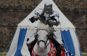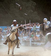 During a medieval joust, two knights would face each other across the lists, gallop towards each other with the intention of unseating the opponent with a lance. Since most men are right handed, the lance was gripped with the right arm and balanced across the body so that the lance-head was angled to the left.
