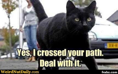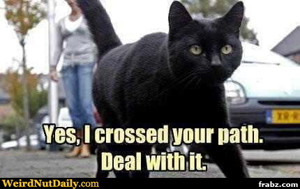 However, a black cat crossing your path is lucky is a little perverse, because the explanation is the cat attracts the bad luck to his unlucky shoulders, thereby freeing you of the burden.