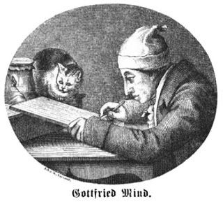 Gottfried Mind (1768 – 1814) was born in Switzerland, the son of a carpenter. But Mind was a sickly child with a weak constitution, and he was also autistic. At an early age Gottfried showed a talent for drawing, but his father believed the only medium worth working with was wood. He would give his son pieces of wood and indeed the young Gottfried became a talented carver. His miniature sheep and cows were popular with the locals, who displayed them on their mantelpieces. However, Gottfried’s real passion was drawing.