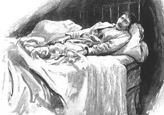 As stories spread people became more suspicious of that their décor was making them ill. When one lady sickened, and her pet cat's fur fell out, she swapped rooms with her maid and made a full recovery…whilst the maid took sick. To make matters worse, the Victorian remedy for illness was to be confined to a room and avoid cold air. This meant that people suffering with headaches, fatigue, chest complaints and nauseau (all symptoms of arsenical poisoning) were likely to take to their beds in a green bedroom with the windows tight shut against draughts and thus :