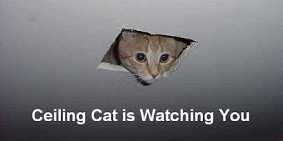 And of course, cats have never forgotten it. Over the intervening centuries they evolved into the ceiling cat to protect their furry brethren by keeping man under constant surveillance at all times.