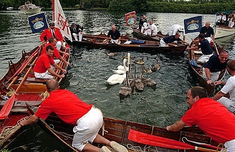 Of course, the birds had to be marked and this lead to an annual ritual of ‘swan-upping’. This involved visiting the riverbanks where the birds breed to catch the newly hatched cygnets and mark them.