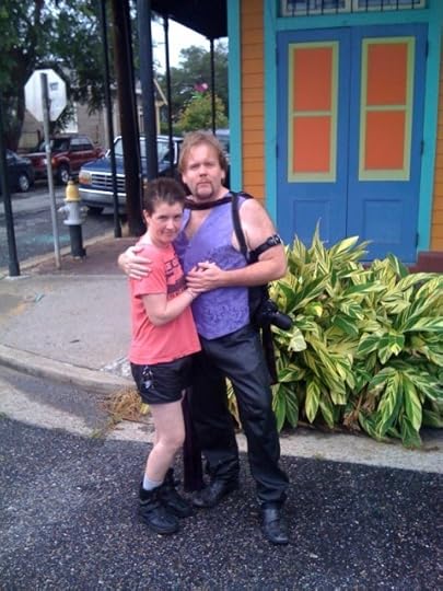My first real Southern Decadence ... well, I can't hope to recreate the immediacy of my Twitter feed. Possibly a simple recounting of events will suffice: Sex, voyeurism, leather, bars, clubs, the Phoenix OMG, more voyeurism, sex, 4-boy peep show, utter exhaustion, revival, sex, much more voyeurism, new friends, oops dropped my phone in the Wild Turkey, sex, brunch, parade, old friends, party, more parade, more utter exhaustion, more sex, *dies* *iz ded* Now I am sad because Grey has left on a two-and-a-half-week vacation to the East Coast, but happy because we got to have the world's best weekend first. Here we are right before Sunday's parade: