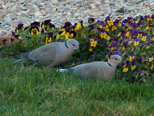 Much to our surprise, a pair of new birds arrived in our backyard one spring. We looked them up in our bird book, but the book didn’t have them. So we looked them up in a different bird book, and it said that Ringed Turtledoves from Asia have escaped from a pet store in Los Angeles and may be found nearby. We live in a suburb of LA!