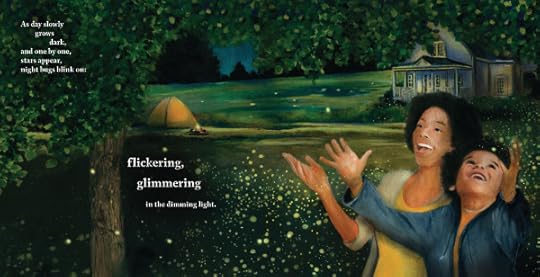 As the sun sets, night creatures awaken. In their rural backyard, a parent and child camp out, watching as fireflies flicker, bats flap, and rabbits race. Atmospheric illustrations bring the nocturnal world to life in this lyrical and informative picture book.
