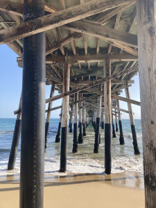We went to the beach. It was super hot when we left our house in Norco. And it was super cold when we reached the beach. (Isn’t this a fun photo from underneath the pier?!)
