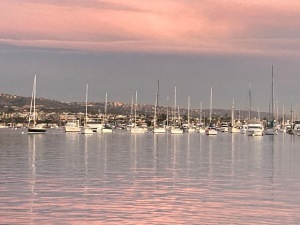 Recently my husband and I drove down to the beach for a nice day in the sun. I snapped a photo of all these boats floating in the bay as the sunset was reflecting a pretty pink on the water.