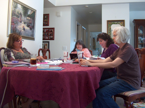 1:00 The ladies arrived with armloads of research books and laptops and file folders of notes. We settled down at my dining room table and shared about the progress we’ve been making.