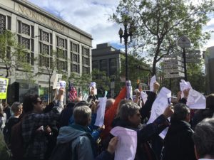 A week ago Friday I went to a demonstration. They held it at the corner of Powell and Market at 5 pm. There were placards being waved and a speaker, three speakers, in fact, holding forth. And a crowd. Not a very big crowd – maybe a few hundred quite a few waving posters of one sort and another. We were there demanding release of the Mueller report. I don’t think we made a difference. I didn’t see anyone with a TV camera and I don’t think it even made the local paper, but it made some of us feel better.