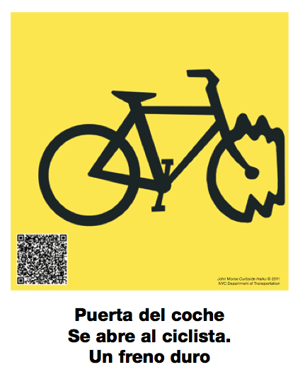 "Colorful 8-inch square signs featuring safety messages in haiku are being installed at high-crash locations near cultural institutions and schools, including the Bronx's Grand Concourse, MoMA, downtown Brooklyn and the Brooklyn Botanical Garden . . .