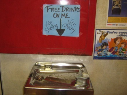 And Cody Toone, who teaches at Cardston Elementary School in Alberta, sends this campaign poster from a grade six student election. I'm not sure the sign quite fits the definition of emotionally intelligent signage, but I am sure that Shelby has a future in politics: