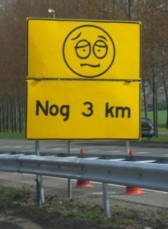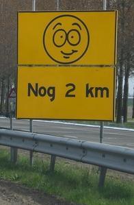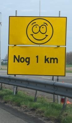 "I drove home from holiday today and came across these signs (in the Netherlands) on a stretch of highway where roadworks were in progress. These smiley signs are placed 1 kilometer apart from each other, each time showing a happier face as you near the end of the works. They didn't get me to the end of the roadworks any faster but they sure brought a smile to my face. It was the first time I saw them but apparently they're also frequently used in Germany and Austria with a similar, positive response from drivers."