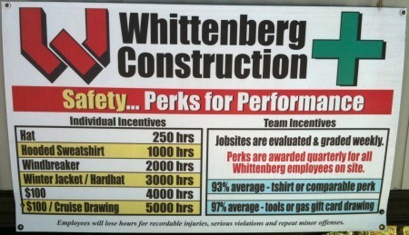 "I know from your blog that you like signs, so I'm attaching the photo of a sign I saw at our local zoo this past weekend. It is not emotionally intelligent, but it certainly illustrates extreme extrinsic motivation. It seems this construction company feels that company swag is exactly the kind of thing that will motivate employees to stay safe. I can hear the employees now, 'Well I was going to carelessly wave this nail gun around for a while, but I've got my eye on that windbreaker.'"