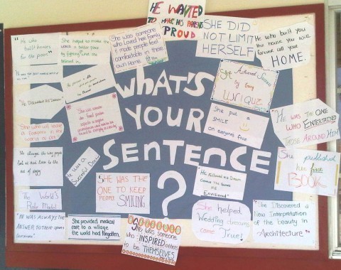 At the International School of Curacao, teacher Danny Kinzer asked his Theory of Knowledge students to undertake the "What's your sentence?" described in Lindsey Testolin's remarkable video and on page 154 of Drive. Then each participant posted his or her answer on the school bulletin board.