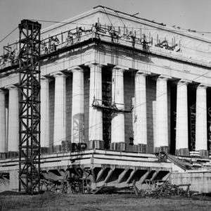 “What’s So Great About Fake Roman Temples?” asks the smarmy New York Times headline. The obvious answer is the Jefferson Memorial (even though it’s actually a fake Greek temple). The Lincoln Memorial was not built by men in peruques and tricorn hats, but by modern Americans—it was completed in 1922. Nothing fake about it—it is built of Yule marble quarried in Colorado. It also incorporates all the optical refinements of ancient Greek architecture—entasis, slightly tilted columns, a curved stylobate—at the same time it is not an attempt to build a replica. Greek temples didn’t have flat roofs and skylights, and they were never entered on the long side. Henry Bacon’s beautiful design is full of such “inauthentic” features. When the Lincoln Memorial was built many fulminated against it—Sullivan and Wright hated it–and they were wrong. Of course, the Lincoln Memorial gains strength from the important events it has witnessed—Marian Anderson’s landmark performance, Marin Luther King Jr.’s speech. Like all good architecture it exists in the present as well as the past.